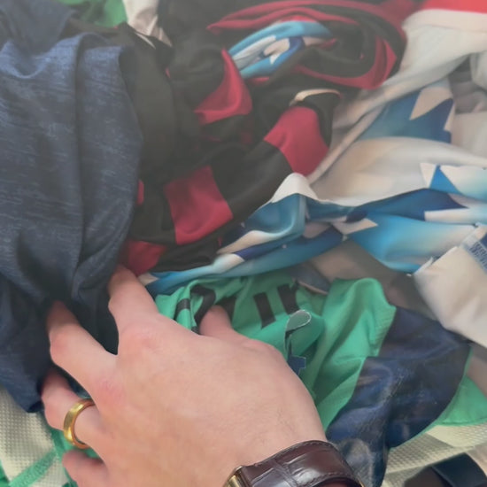 Featuring a hand stitched badge on the bottom, made from multiple recycled jerseys, each one is truly unique.